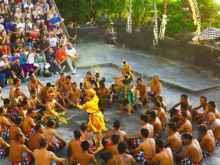 断崖絶壁に建つウルワツ寺院のご見学と インド洋に沈む美しい夕日を見ながらの バリ島の奥深い文化のひとつである舞踏劇・ ケチャック&ファイヤーダンスをご鑑賞。 ご夕食は、タンジュンベノアにある SADARA Boutique Beach Resortにて 3種類の中から自由にご選択できる 豪華ディナーをお楽しみ下さい。