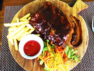 | ・オリエンタル セットメニュー タイ風 ビーフ サラダ (テンダーロインビーフの薄切りと新鮮野菜のスウィートライムビネグレットドレッシング) トムヤム スープ(トムヤムクン風スープ) ポークリブ (蒸した後にローストした柔らかなポークリブの醤油風味ソース、フライドポテトと野菜を添えて) デザート(フレッシュフルーツのアイスクリーム添え) |