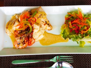 | ・シーフード セットメニュー シーフード サラダ(魚介類とミックスレタスのバルサミコドレッシング) シーフード チャウダー スープ(シーフードのクリームスープ) シーフード プラッター(魚と海老とイカのソテー、マッシュポテトと野菜を添えて) デザート(フレッシュフルーツのアイスクリーム添え) |