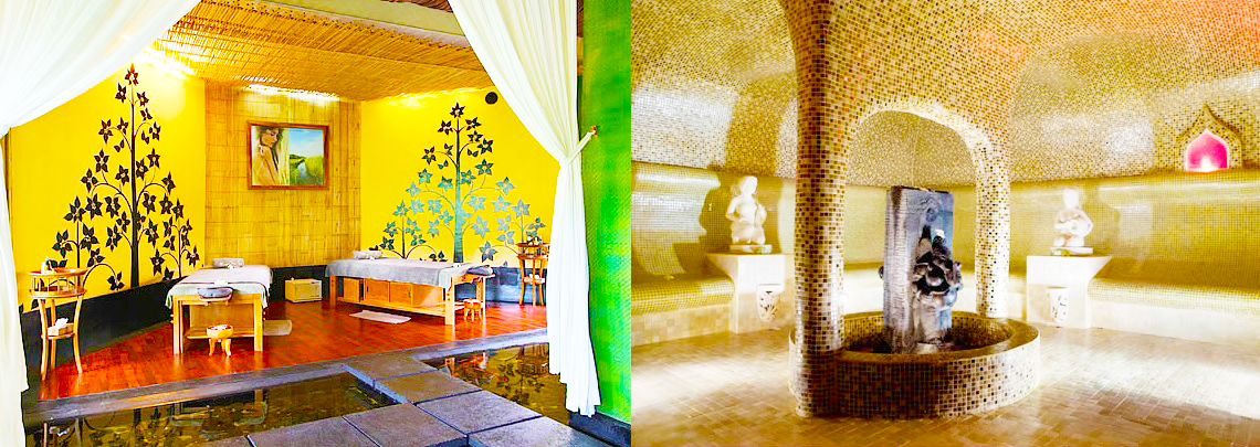 もしくはスチームルームにて身体を温め、続くマッサージの効果を高めます。